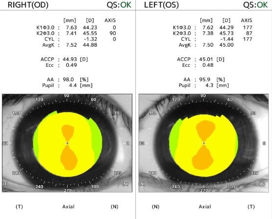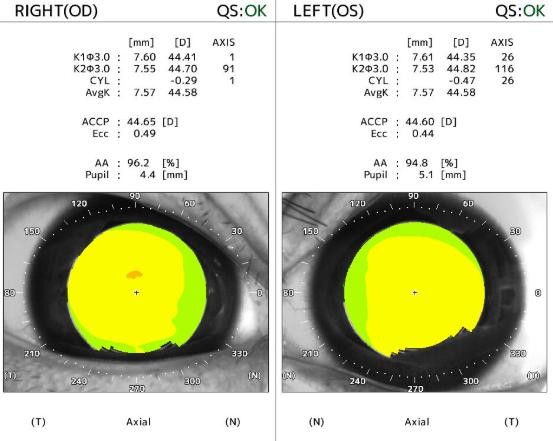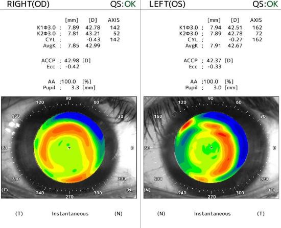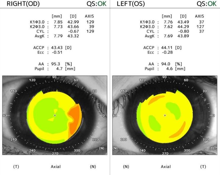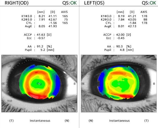 ・角膜形状:大きな異常なし 両目ともオルソケラトロジー適応あり